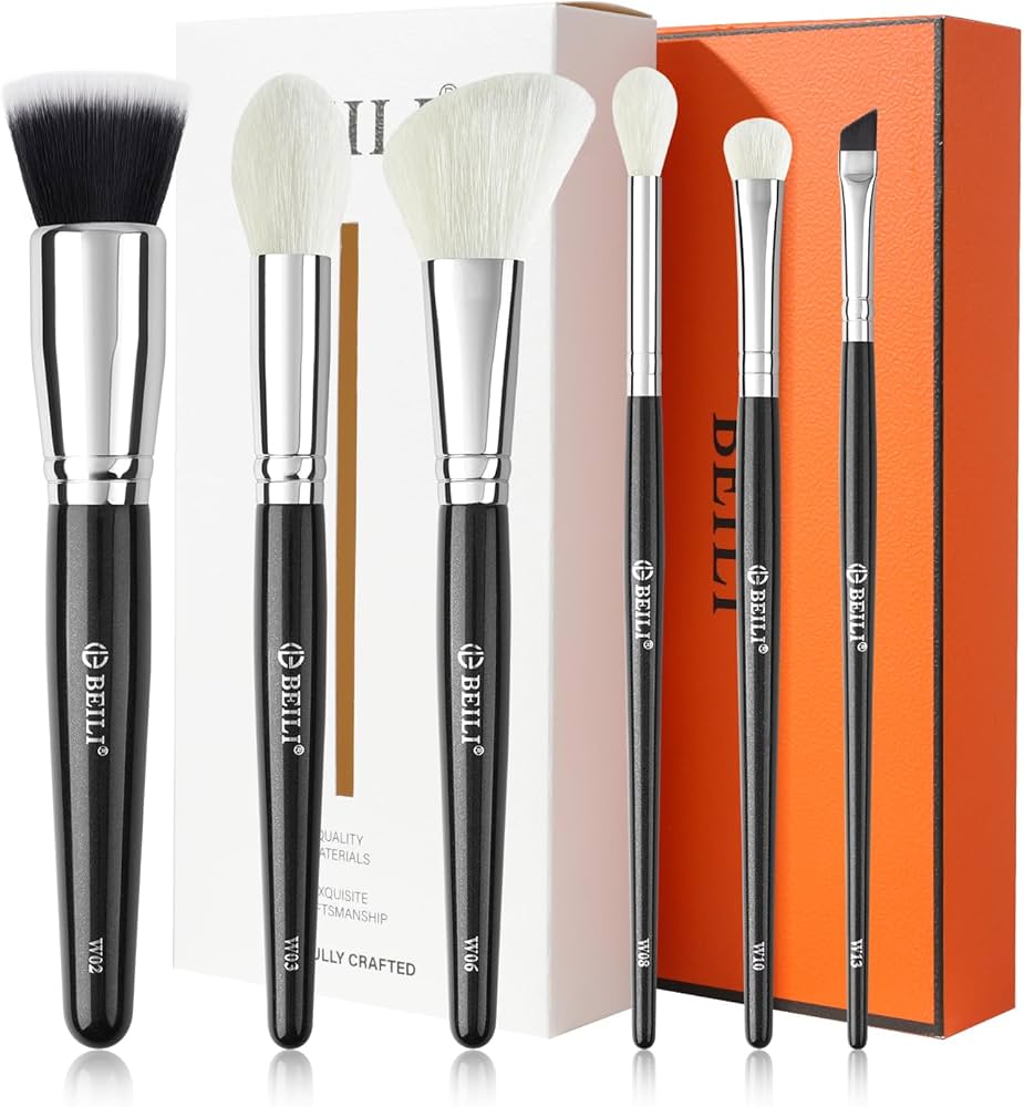 Consigue un look de maquillaje completo con un juego: 6 pinceles de maquillaje que contienen base plana, desenfoque, pliegue definido, delineador en ángulo, colorete en ángulo, iluminador cónico.