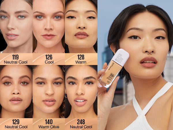 •Superstay Lumi Matte, base de maquillaje líquida de larga duración con alta cobertura y acabado luminoso
