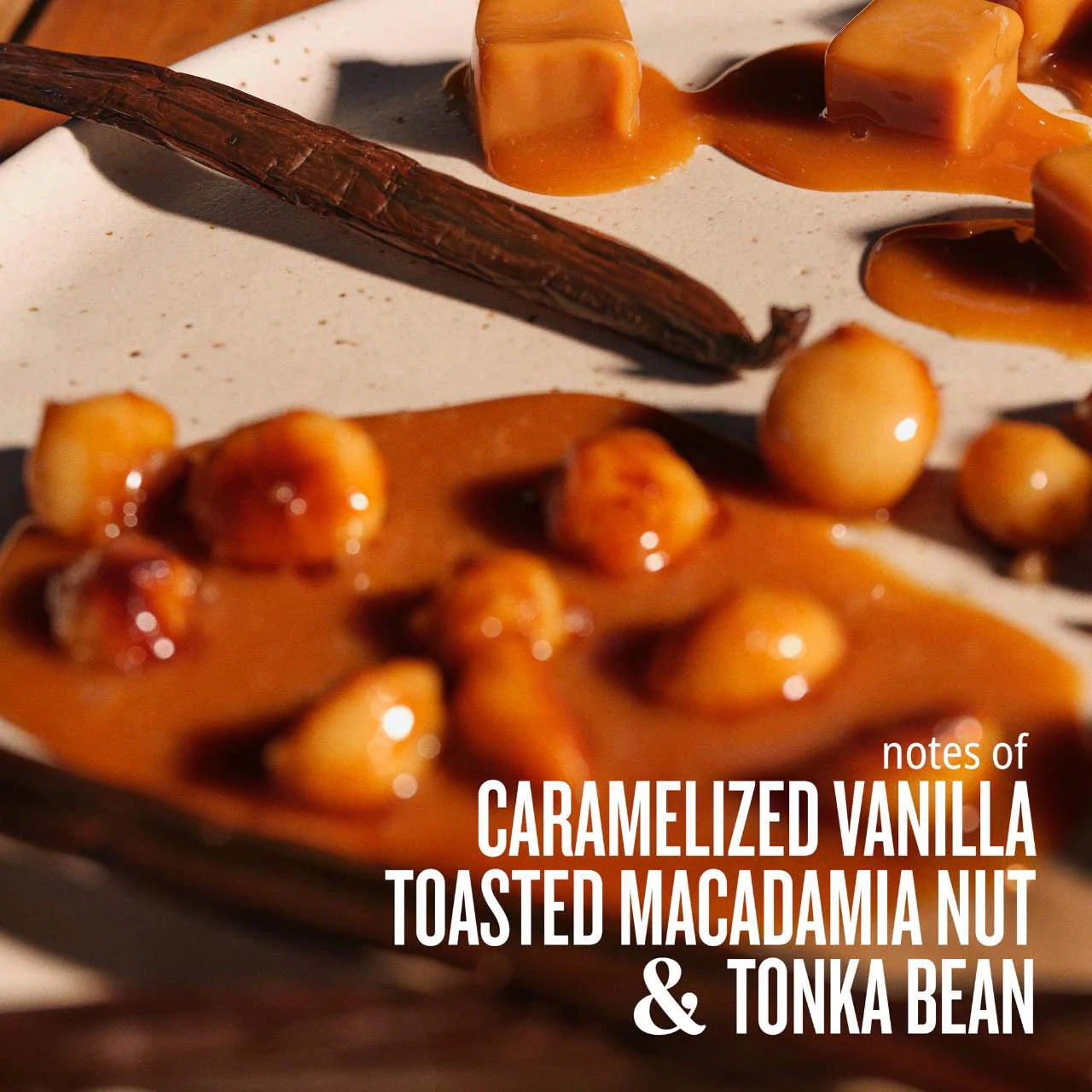 Qué es: Bruma para cuerpo y cabello con aroma cálido y envolvente de vainilla caramelizada y nuez de macadamia tostada.