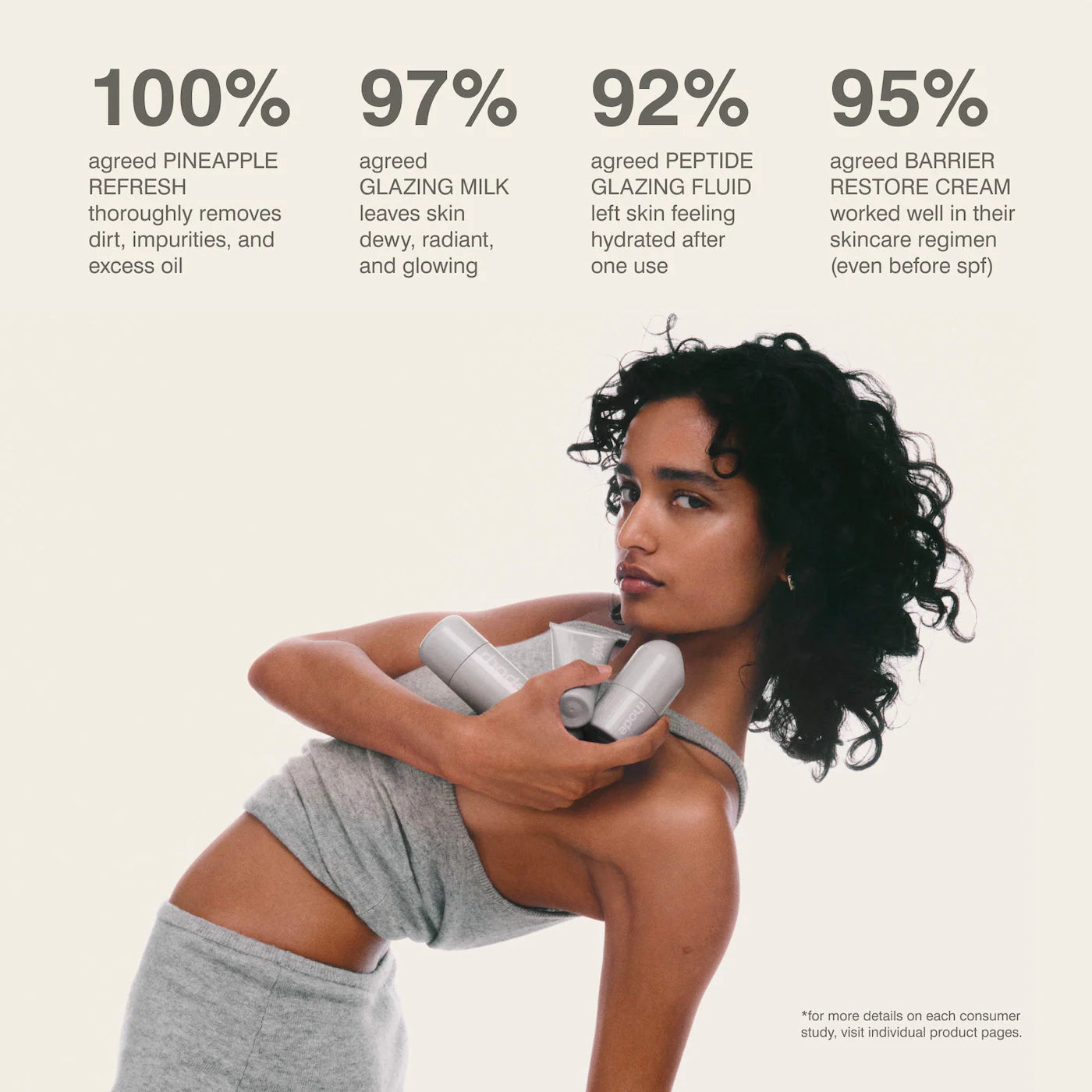Qué es: Un set con cuatro tamaños mini de productos esenciales para el cuidado de la piel glaseados de Rhode para su rutina diaria.