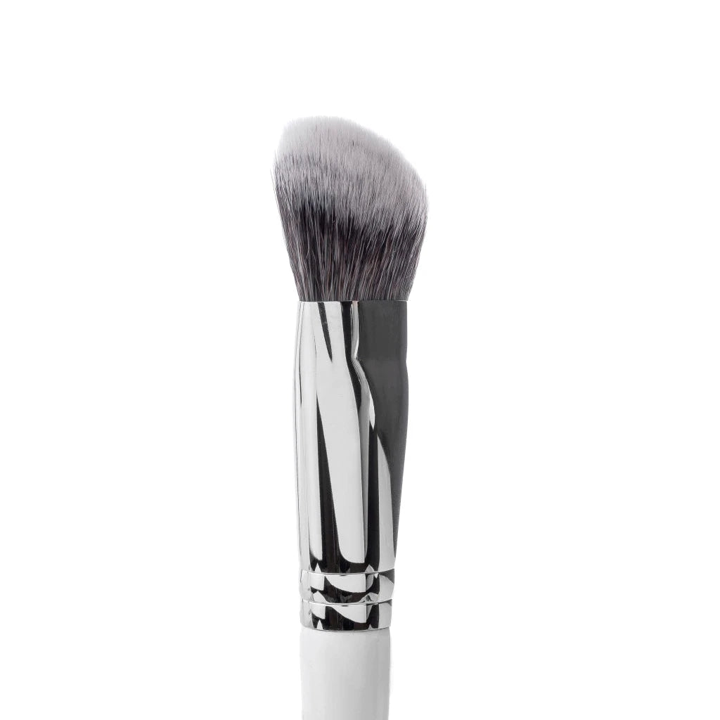 Esta brocha cuenta con un particular diseño angular que permite aplicar y difuminar base y contorno en crema de manera profesional. Es uno de nuestros “Best Sellers”.